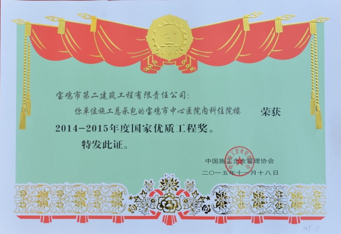 國家優(yōu)質(zhì)工程獎(寶雞市