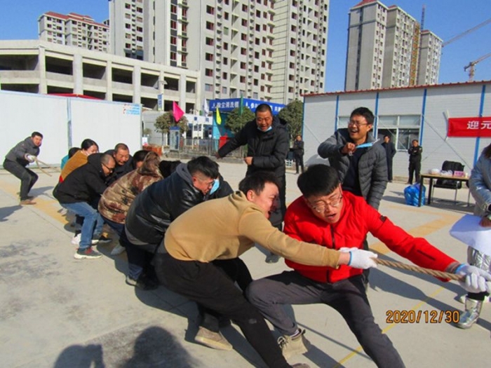 2020年12月31日,秦漢和苑項(xiàng)目部聯(lián)合西安國采、陸港·金海岸兩個兄弟項(xiàng)目在秦漢和苑項(xiàng)目生活區(qū)內(nèi)開展了“迎新年·慶元旦”文體活動。70余名項(xiàng)目部員工參加。