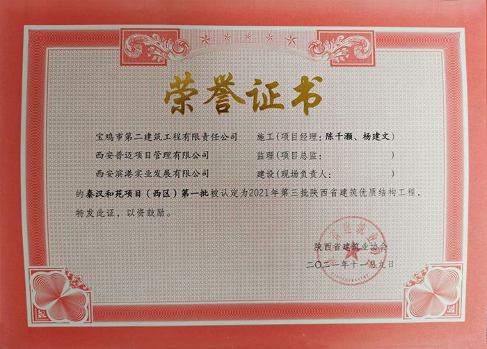 2021年度陜西省建筑優(yōu)質(zhì)結(jié)構(gòu)工程(秦漢和苑項(xiàng)目(東區(qū))第四批)
