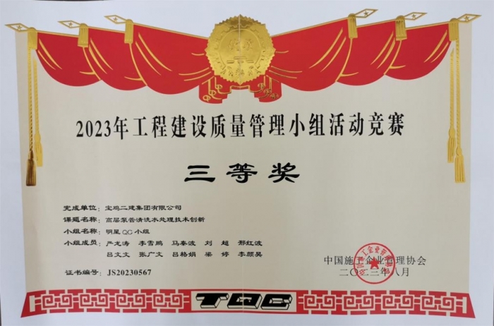 最終,碧水潤園QC小組“提高衛(wèi)生間反坎一次驗(yàn)收合格率”榮獲2023年工程建設(shè)質(zhì)量管理小組活動競賽一等獎,技術(shù)質(zhì)量部QC小組“提高屋面廣場磚施工驗(yàn)收合格率”榮獲2023年工程建設(shè)質(zhì)量管理小組活動競賽三等獎,明星QC小組“高層泵管清洗水處理技術(shù)創(chuàng)新”榮獲2023年工程建設(shè)質(zhì)量管理小組活動競賽三等獎。