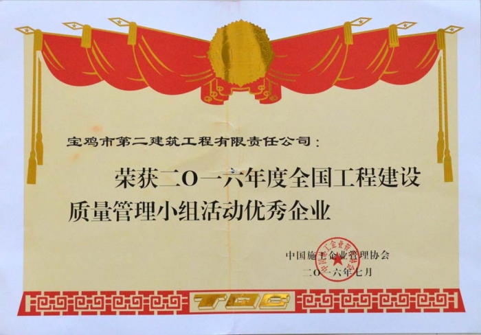 2016年度全國工程建設(shè)質(zhì)量管理小組活動(dòng)優(yōu)秀企業(yè)