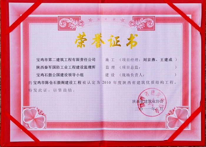 2010年省級(jí)優(yōu)質(zhì)結(jié)構(gòu)工程(石鼓閣)